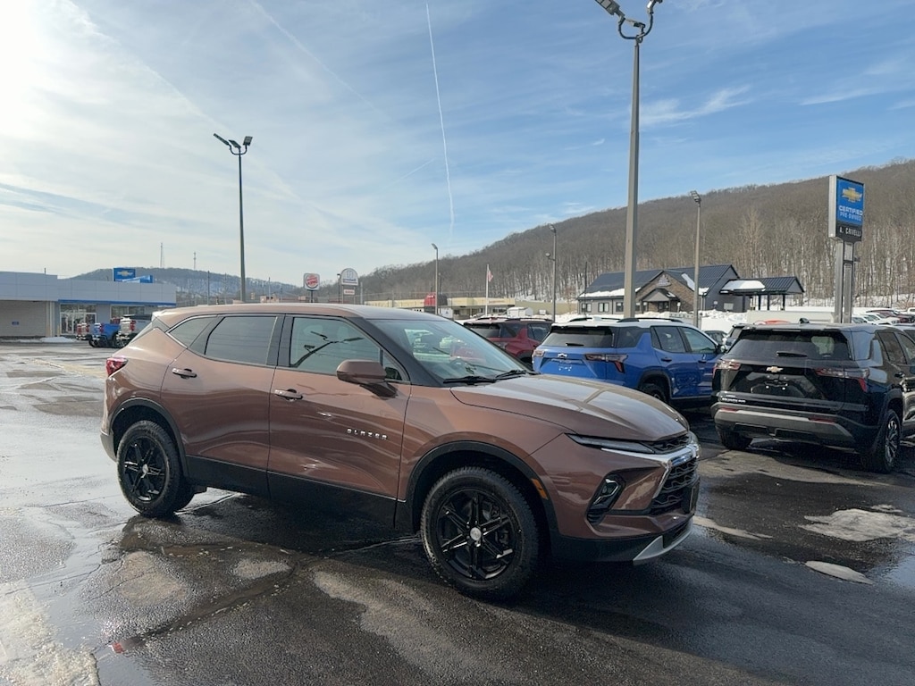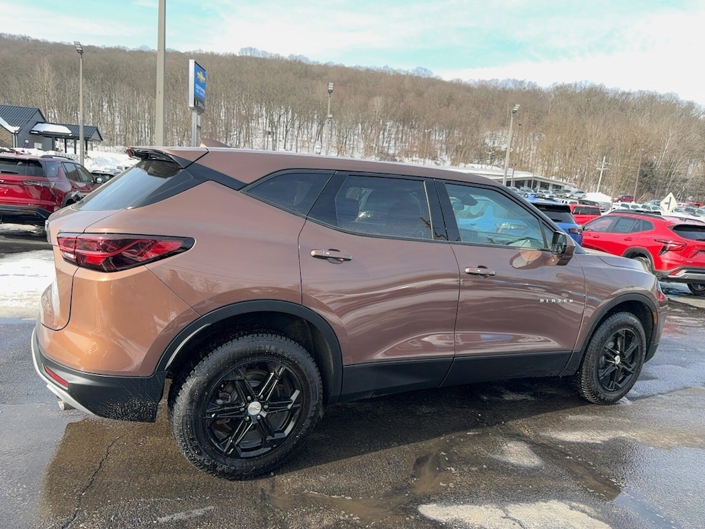 Odometer is 4089 miles below market average! AWD, 170 Amp Alternator, 3.47 Final Drive Axle Ratio, 4-Way Manual Front Passenger Seat Adjuster, 4-Wheel Disc Brakes, 6 Speakers, 6-Speaker Audio System Feature, 8-Way Power Driver Seat Adjuster, ABS brakes, Air Conditioning, Alloy wheels, AM/FM radio: SiriusXM with 360L, Apple CarPlay/Android Auto, Auto High-beam Headlights, Automatic temperature control, Brake assist, Bumpers: body-color, Child-Seat-Sensing Airbag, Compass, Delay-off headlights, Driver door bin, Driver vanity mirror, Dual front impact airbags, Dual front side impact airbags, Electronic Stability Control, Emergency communication system: OnStar and Chevrolet connected services capable, Four wheel independent suspension, Front anti-roll bar, Front Bucket Seats, Front Center Armrest, Front dual zone A/C, Front reading lights, Fully automatic headlights, Heated door mirrors, Illuminated entry, Knee airbag, Leather Shift Knob, Low tire pressure warning, Occupant sensing airbag, Outside temperature display, Overhead airbag, Overhead console, Panic alarm, Passenger door bin, Passenger vanity mirror, Power door mirrors, Power Driver Lumbar Control, Power driver seat, Power steering, Power windows, Preferred Equipment Group 2LT, Premium audio system: Chevrolet Infotainment 3 Plus, Premium Cloth Seat Trim, Radio data system, Radio: Chevrolet Infotainment 3 Plus System, Rear anti-roll bar, Rear reading lights, Rear seat center armrest, Rear window defroster, Rear window wiper, Remote keyless entry, Ride & Handling Suspension, Security system, SiriusXM w/360L, Speed control, Speed-sensing steering, Split folding rear seat, Spoiler, Steering wheel mounted audio controls, Tachometer, Telescoping steering wheel, Tilt steering wheel, Traction control, Trip computer, Variably intermittent wipers, Voltmeter, Wheels: 18" Grazen Metallic Aluminum. 2023 Chevrolet Blazer LT 4D Sport Utility Copper Bronze Metallic AWD 9-Speed Automatic with Overdrive 2.0L Turbocharged